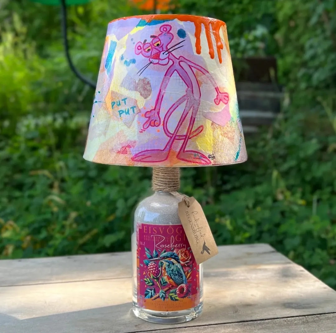 Hochwertige und handgefertigte Leuchte aus einer leeren Flasche der limitierten Sonderedition des Regensburger Eisvogel Gin