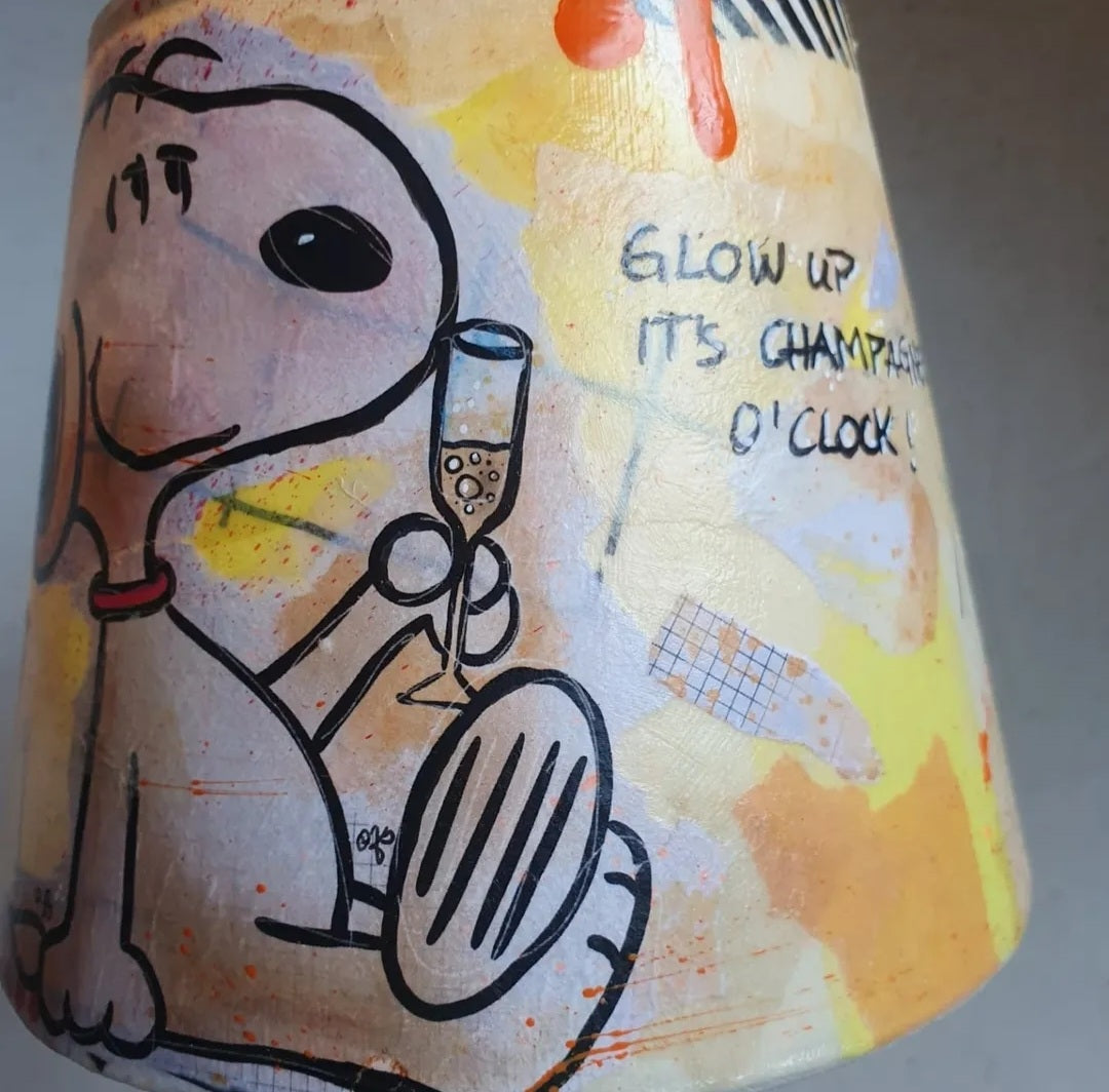 Der Lampenschirm wurde von der Künstlerin Sandra (zettessart) entworfen und bemalt